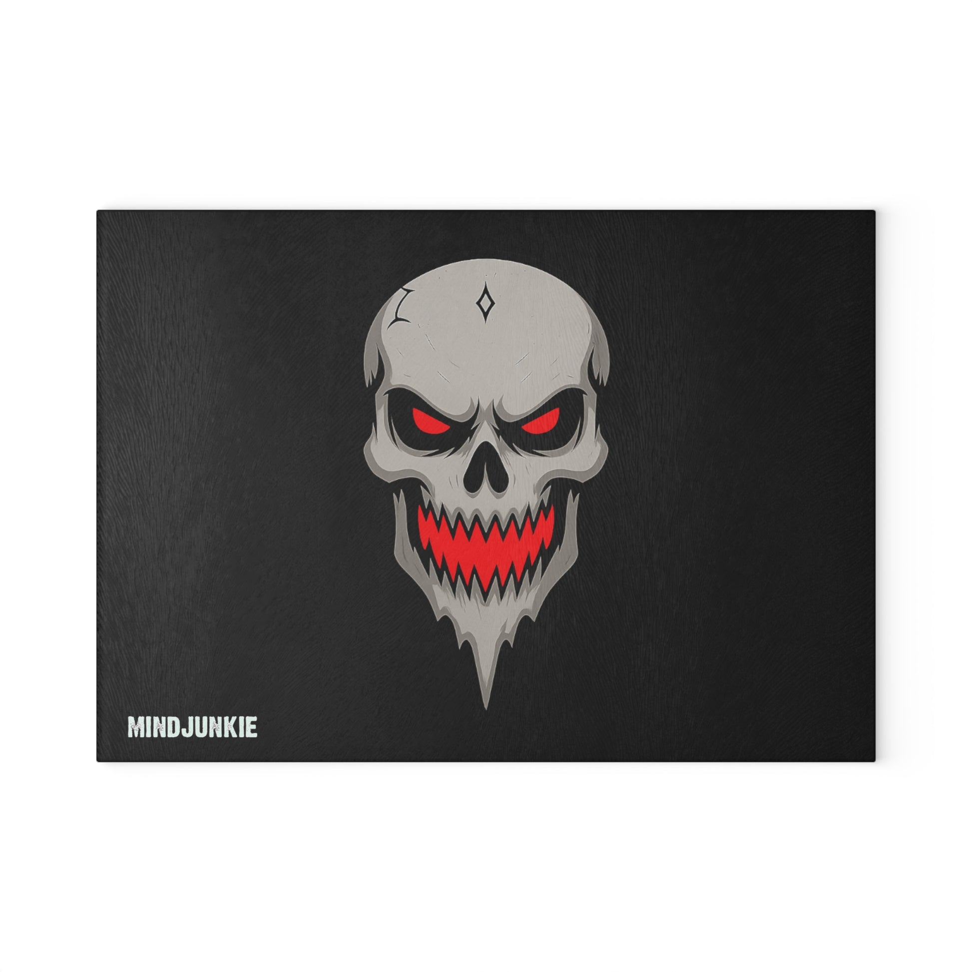 Chop, prep, and terrify — all on the official MINDJUNKIE Skull cutting board. Whether you're slicing garlic or summoning dinner demons, this tempered glass board is built to handle it all with bold design and eerie precision.
